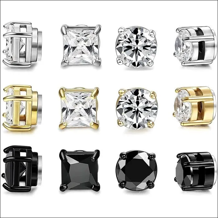 NONE; 6 Pairs of Stainless Steel Magnetic Stud Earrings for men, women, and girls. These no-hole magnet earrings offer a stylish, convenient alternative to traditional piercings.