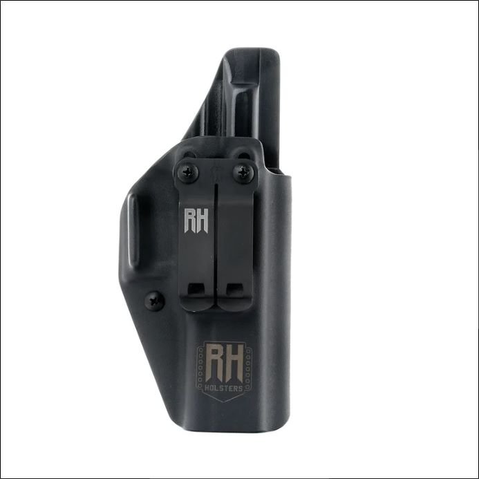 The IWB Sharky by RH Holsters® is meticulously crafted from 2mm thick Kydex, providing a robust and lightweight solution for concealed carry enthusiasts. Its low-profile design minimizes bulk, ensuring minimal space is occupied inside the waistband, which enhances concealment under clothing. The holster is vacuum-pressed using precise molds, resulting in a detailed fit that securely holds Glock models 17, 19, and 26. Hand-polished edges prevent discomfort during extended wear. The full SweatGuard extends along the entire slide, protecting the firearm from perspiration and skin oils while preventing direct contact with the body. An integrated claw attachment aids in pressing the grip of the pistol closer to the body, reducing printing and enhancing concealment. The holster’s open design allows for easy cleaning and accommodates firearms with extended barrels, threaded barrels, compensators, or collimator sights. Adjustable retention and the ability to modify cant and ride height provide users with a customizable draw experience. The double-clip system ensures a secure attachment to the belt, enhancing stability during movement. This holster is suitable for both right-handed and left-handed users and is ideal for all-day concealed carry.