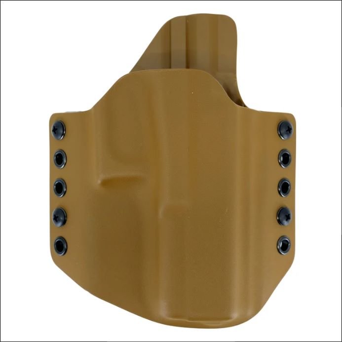 A durable Kydex outside-the-waistband (OWB) holster designed for Glock 17/22/31 pistols, featuring a half SweatGuard for enhanced comfort and protection.
