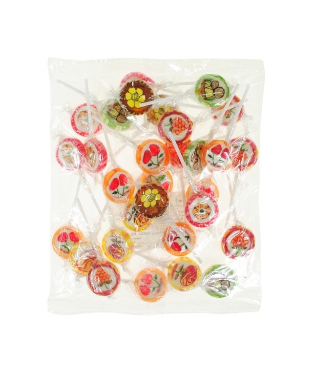 Beautiful, colorful, hand-made patterned lollipops in various designs. Oval lollipops with floral, mushroom and fruit motifs